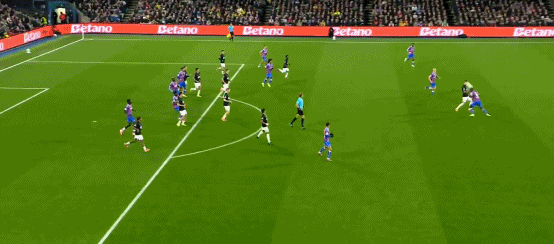 第24分钟,格伊头球摆渡,拉克鲁瓦抽射破门,水晶宫1-0